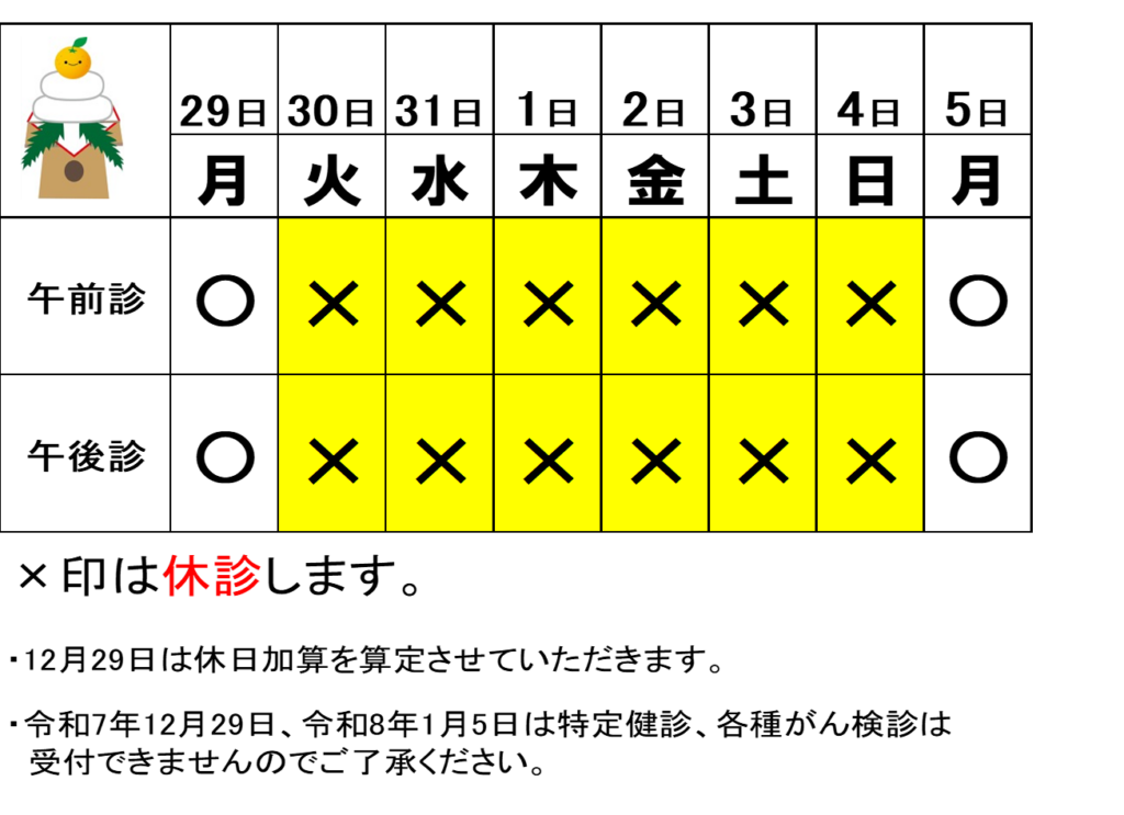 年末年始休診のお知らせ